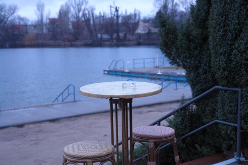 Past glories they may be, but as the next generation continue to study and create in the studios of the Kunsthochschule, and struggling artists look for the next Berlin neighbourhood for cheap rents and exhibition spaces, perhaps Weißensee will have its time again. And if not, it still has a lot going for it, not least its picturesque little lake. We walk the mile around the water’s edge alongside elderly couples, kids on bikes, joggers and dog-walkers, dodging muddy puddles (most of us) and watching the ducks and swans that own the water at this time of year. In the summer they will have to make space for the bathers from the Strandbad, but today on this gloomy January morning, no-one is bathing, choosing instead to remain on shore with a cup of coffee or glühwein served by the out-of-season lifeguard sitting at the kiosk by the turnstile.