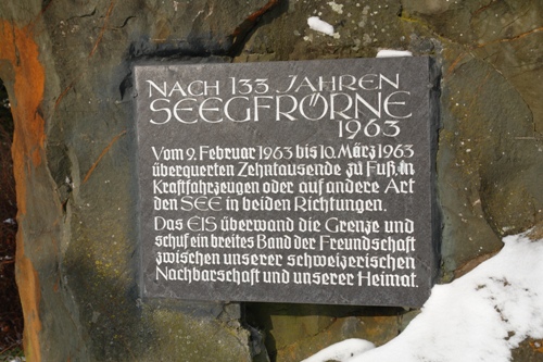 Since 875, when reliable records began to the kept in the churches on the lake shore, the Bodensee (as it is known to German-speakers) has frozen completely only 34 times. The last occasion was in 1963, when thousands of people crossed from one shore to the other on foot, horseback, and even driving a Volkswagen Beetle. In Nonnenhorn, on the German shore, two ceremonial stones have been placed to commemorate this event and the earlier “big freeze” in 1830, and the connections with the Swiss town of Rorschach that have built up thanks to these uncommon natural events.