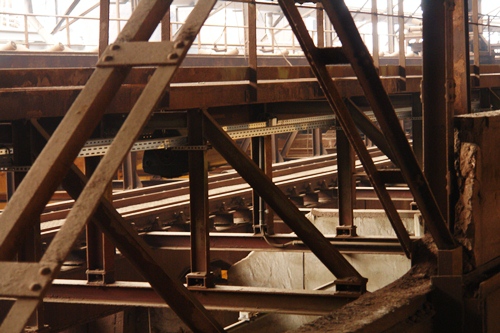 Bricks crumble and iron rusts, the old furnace blowers have oil-smeared corners, and you can never escape the knowledge that this was a place of intense heat and backbreaking work, of long hours in almost unimaginable conditions. In the summer they melted and in the winter they froze. There is little mention of this, but until the post-war era and the hard-won bargaining power of the unions, this must have been an intolerable place to work. On the shift-change whistle thousands of men poured out of the works towards the bars and cafes around the train station, to pause with oil-smeared faces and aching limbs for a couple of knock-off beers before heading home to prepare for coming back the next day to do it all again.