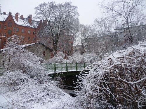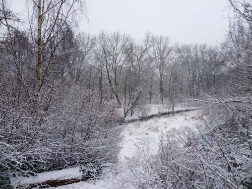 At seven o’clock this morning there was no snow on the ground. By nine o’clock all but the roads with the churning wheels of rush hour traffic was covered. It feels too warm for the snow to stick around, let alone fall in the first place, and on the U-Bahn the reality of the weather up on the surface had yet to penetrate the report on the info screens that were insisting on rainfall in the daily forecast. The snow will most likely all be gone by this evening, but it left us with some beautiful moments from that shortest of periods between the snow settling and the daily life of the city trampling it to mush.