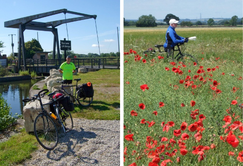 The next sections took through the old coal mining areas of Yorkshire, cycling on old spoil heaps now graded and plated over, alongside the meres formed from mining collapses now re-invented as nature reserves for marshland plants and wading birds and finally out into the rich farmland or south Yorkshire where the bright red poppies shone among the ripening corn. Staying first just outside Doncaster with all its coal mining heritage and then at Selby with the beautiful Minster and the (very early) market.