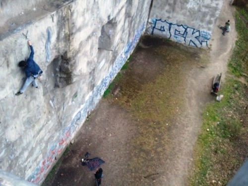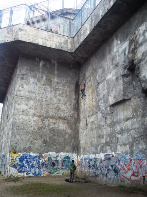 It must be frustrating to be a climber based in Berlin, surrounded by incredibly flat countryside. But watching them climb the flak tower reminded me that you can always make the best of your situation, whether it is walking, climbing or, like the guys catching a wave down in Munich, surfing despite being hundreds of kilometres from the sea.