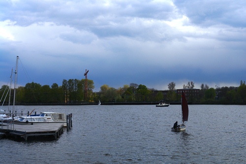 Here at Rummelsburg the river hits a dead end, a Bucht (bay) created by the Stralau peninsula that juts out and down into the Spree. Beyond the team-building playground we reach the first apartment blocks of the massive new building complex that has taken place here over the past decade or so, including new townhouses and the re-development of old industrial buildings and a prison to give professional couples and families a sense of space in the heart of the city. It looks like a pleasant place to live, with the gardens, the riverside promenade, and easy access to public transport. This may be in the wild East, but the real estate agents have no problem shifting any properties that pass across their desks.