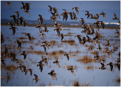 The high spring tides provide watchers with the opportunity to get very close to these huge flocks and marvel at the speed and agility of the birds as they wheel and swoop along the tide line. Occasionally more solitary birds arrive, the Short-eared Owls, Marsh Harriers and Peregrines hunting over these rich lands and thrilling those who take the opportunity these high tides provide. The area is rich in migratory species too and rewards those who get up early, ignore the variable weather and put in the hours of patient watching.