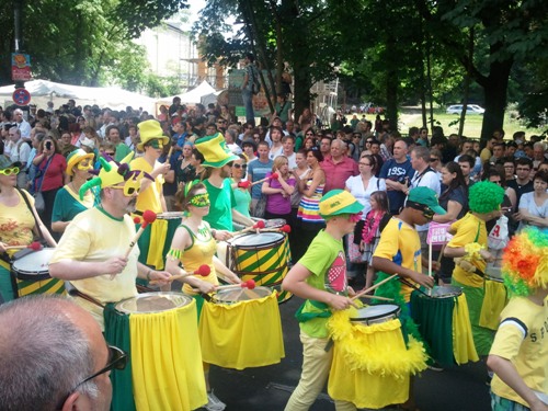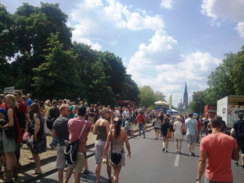 16 years ago 50,000 people took to the streets to watch the first parade of the Carnival of Cultures in Berlin. Over the weekend, the estimate was closer to a million, all drawn to the sounds, tastes and smells of this annual street festival and parade. We walked along the parade route, picking our way through crowds to get a glimpse of the floats and the performers, enjoying the novelty of a stroll down the middle of the road whilst cooks worked their stalls on the pavement and locals sunned themselves on their balconies as one of Berlin’s biggest street parties passed by beneath them.