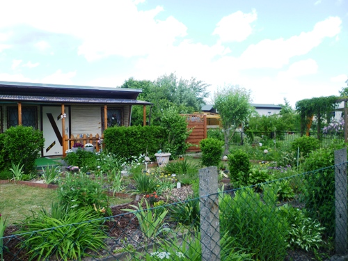 At the point where the wall once kinked around the “ghost town” where American troops once trained for house-to-house combat we came across more of those cherry trees donated by Japan to the people of Berlin. From there we followed a path away from the wall trail through the bungalows and gardens that are on the edge of Teltow and which would have once been right in the restricted zone, hard up against the border. Only the most trusted would have been allowed to tend those allotments. At Teltow we caught a train back into the city, which was nicely symbolic as the three of us had spent the previous two summers working on the Europe by Rail guidebook, and yet this five minute hop from Brandenburg back into Berlin was the first train ride we had ever shared together.