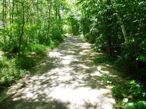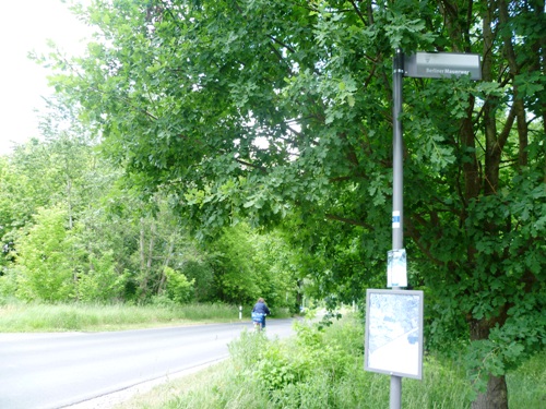 Apart from the neatly paved track upon which the guards once patrolled the no-man’s land, and the signs pointing the way, it would not be immediately obvious what it was we were walking on, so completely have traces of this old border been swept away. There were a few signifiers that something unusual had gone on here, such as the abrupt nature in which the city – including blocks of flats – gave way to the fields of the surrounding countryside, but for most of the walk it felt as if we were simply following a well-maintained and very straight footpath through the trees and alongside the fields.