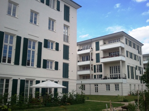 Beyond the shopping estate new streets have been created in the past twenty years, and developers have built townhouses and gated apartment blocks, taking advantage of the twin opportunities of space so close to the heart of the city, and the weird quirk of city administration that means that this little sliver of land between Lichtenberg and Friedrichshain belongs to high-priced and gentrified Prenzlauer Berg, whatever the reality on the ground might be. In the short walk we passed by some fascinating contrasts in architectural style, from the old red-brick industrial buildings (including parts of the S-Bahn station), colourful Plattenbau of the German Democratic Republic, the post-Wende townhouses and apartment blocks, and an Umspannungswerk (electricity transformer station) that looks like a Museum for Modern Art.