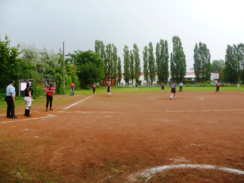 The voices that rang out around the diamond were most definitely German, there were enough shouts of “bunt”, “steal” and “strike”, as well as frantic arm gestures from the coaches to give it an authentic feeling. The only thing the women softball players of Berlin were not doing was spitting tobacco…