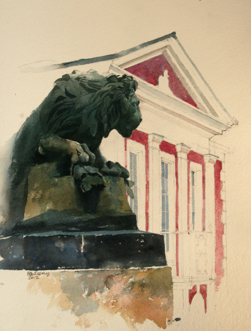 If you visit Rob’s website you can see why he is regarded as one of the United Kingdom’s top mountain painters, and as a keen mountaineer himself, it is obvious that the landscape has inspired his work in a way that allowed the finished piece to inspire me and all those who experience it. Rob has recently published a book on the town of Portmerion, some images from which you can see illustrating this post, and until the end of September it is possible to see the originals from the book in an exhibition at his gallery.