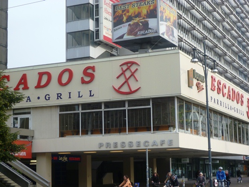 Twenty-three years after the fall of the Berlin Wall, people still use the clock as a meeting point. The House of the Teachers is still adorned with a suitably inspiring, socialist mural, and the television tower still gazes down upon the whole scene. But much else has changed on the Alexanderplatz. The old Centrum Department Store is now the Galeria Kaufhof and got a facelift eight years ago, the Pressecafe is now a steak house, and the old Interhotel Stadt Berlin has had a couple of new names even in the time I have been in the city. Even some post-Wall changes, such as the text from Döblin’s Berlin Alexanderplatz that once graced the facades of the buildings on Karl-Marx-Allee have now faded, although if you look closely you can still see the outline of some of the letters washed away by time and the elements.