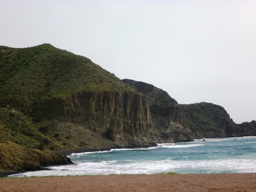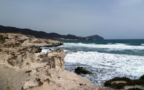 The coastal path took us north, above jagged and dramatic cliffs, finding its way between the water and the dormant volcanos that give this corner of the national park such a distinctive look. The track had once been a mine road, and we came across abandoned buildings and old quarries that were a reminder of an industrial past in this corner of Andalucia. But all was quiet now, and in the ten kilometres we walked between San Jose and the Castillo San Felipe, where waves crashed against salt-eroded stone walls, we did not meet a single soul.