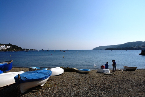 The town of Cadaqués on the Costa Brava, a couple of hours north of Barcelona meets all expectations of a Mediterranean fishing village-turned-tourism hot spot. You know it because you have been there, have the postcard, or have had the quick tour via some search-for-the-sun relocation programme… Whitewashed houses cluster around a sandy beach protected from the sea by rocky promontories on either side. Local lads and lasses buzz around on scooters, whilst at the shaded tables of the cafés in the main square pale-faced would-be Shirley Valentines flirt with moustachioed waiters. Along the beach self-satisfied businessmen stroll, well-fed with their well-dressed, heavily made-up wives, while good-looking police men and women loiter on street corners, tanned and inscrutable behind reflective sunglasses.
