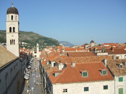 “See here?” he said, and we turned to follow his finger. “Serbian Army. From here they shelled down into the city, for six months. Crazy times. Look.” Now he was facing down towards the old city. “See where the slates are different colours? Brighter than the rest? They were the direct hits.”