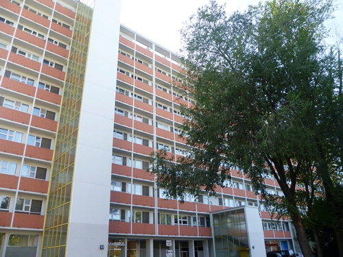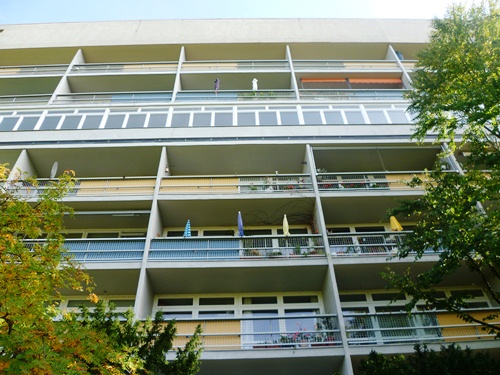The architects involved include many of the great names of the mid-twentieth century, including Le Corbusier, Walter Gropius, Oscar Niemeyer, Hans Scharoun and Max Taut. Although it is possible to see what they were trying to do with the quarter, it still felt as if they had missed something in the execution as we wandered around the (admittedly) leafy streets of the neighbourhood. Perhaps it was simply the absence of a focal point, of a community and public space… I don’t know. According to our guide on the tour, the Hansaviertel is one of the more deprived corners of Berlin, despite its architecturally legacy, which stands in interesting contrast to the Karl-Marx-Allee, where those representative buildings have become highly prized.