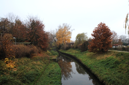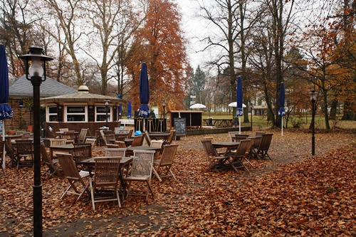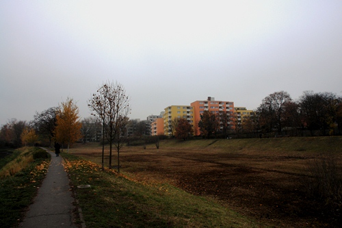 The first stretch, through Wedding, took me on a well-trodden route between the sixties housing blocks and allotment gardens of this multicultural and working class corner of the city, until we passed beneath the railway bridge and entered Pankow, right where the river makes its sedate progress through the Bürgerpark. In the summer this is one of our favourite haunts, with its playground and wide open fields for football, its sausage grill and beer garden, with ice creams and even a small library beneath the trees. On this November day the park was quiet, aside for an old couple sitting beside the bandstand, where no music will be played until the spring, and the dog walkers and joggers for whom there is no off season, however chilly the weather.