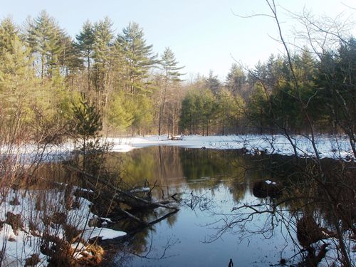 Such thoughts came and went as we walked the trails near Amherst. As we climbed higher, our design was to emerge from the dense forest to an open ridge from where we would view the valley below. It was an expectation frustrated as the bright winter sun flickered through branches like a temperamental strobe. Our way was long lost but the vague horseshoe we had walked hopefully would return us to the path earlier abandoned. Reaching the crest of the hill the thicket relented slightly and there it stood; a solitary chimney, its hearth intact, the building gone to ground. Frost’s line was exact: ‘Now the chimney was all of the house that stood’.
