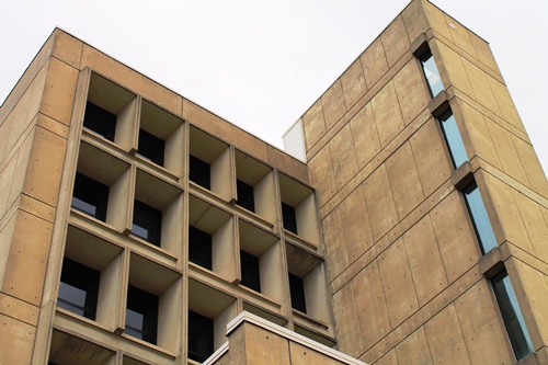 On the very weekend we explored the contrasting institutions of Amherst an article appeared in the Boston Globe by Max Page, professor of architecture and history at UMass, discussing the subject of the campus, the “brutal beauty” of its buildings (interestingly, a similar phrase subtitles this blog article about the Roger Stevens building), and the need to protect the architectural history of the campus despite what the majority of people might feel about the aesthetic appeal of the buildings themselves: