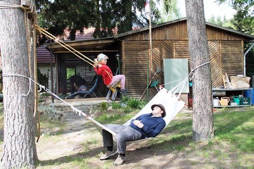 Both days we walked, through different sections of forest, some planted, some much wilder-looking, over some sandy dunes and close to the odd farmer’s field. We could pick out the parts of the ground where boars had rummaged, or holes in the trees where the woodpeckers pecked, but there was not much wildlife in view during the daytime apart from so many ants attempting to find their way up our trouser legs. Lotte went exploring with her friend through the trees, out of sight (but not earshot), and we marvelled at how far away Berlin could feel when we were really so close. On the Sunday afternoon the clouds darkened as we waited for the Heather Train to take us home again, and we returned to a Berlin damp from the first summer rainstorm of the season. Pushing open the door to our apartment I felt as we had been gone for days, rather than the barely 36 hours since we had made our way north to Karow. And as always in these situations, we sat on our balcony and made a resolution to do it again, as soon as possible…
