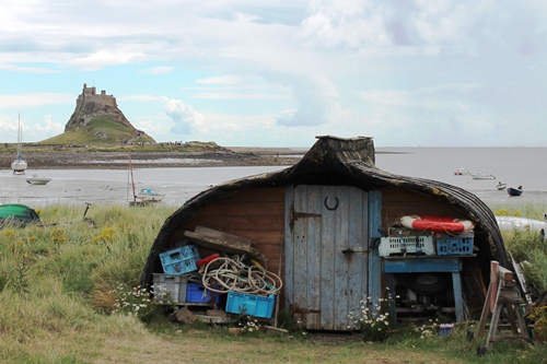 We drop down past the harbor, where upturned boats have been converted into storage sheds, and join the throng. We hear German and French, plus some languages we cannot decipher. For centuries people have been making a pilgrimage to Lindisfarne, walking across the sands at low tide to this cradle of English Christianity, and still they come, only now they are more likely to drive the causeway than brave the sands, and come armed with a National Trust membership card rather than a battered copy of the Bible.