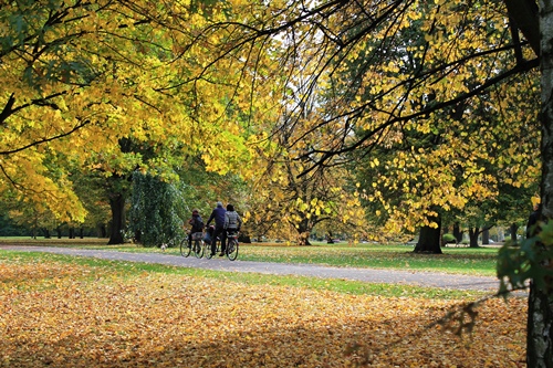 Thankfully we were within striking distance of one of Berlin’s loveliest parkland spaces, and in the Treptower Park we discovered all the riotous red, orange and yellow colours we could have hoped for, as we walked along the river. We passed through the melancholy collection of shuttered huts for the boat trips that are already running on an off-season schedule. We walked by the few remaining houseboats, the once proud community on the water here has been forced to berthings new, and then gazed across the leaf-covered tables and chairs of the Zenner biergarten, where in the summer pints are poured, sausages grilled, and old gentlemen and ladies swing to Schlager on the open-air dancefloor. There were a handful of outdoor drinkers enjoying the October sunshine, and they were being well rewarded. Not only was the views across the water beautiful, but it was unseasonably warm.