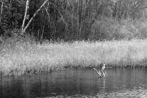 Instead we make our way along a canal that is part of the complex network of waterways in the region and which links Waren and the Müritz with the next lake and the next and the next, all the way to Hamburg. We pass large houses with gardens running down to the waters edge, the leaves and reeds showing the last signs of autumnal colour before the winter turns everything monochrome. In the shallows we spy a Grey Heron and some Great White Egrets. We pass beneath the road bridge and the canal opens out.