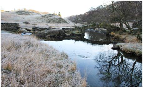 Waking up to the silence of a valley in the hills is always something special but when the frost has worked it’s magic on the landscape it seems even quieter and rather extraordinary, and so it was on that particular Monday. The fields and trees were white on the far side of the valley and there were streaks of ice running down the centre of the narrow valley road. As the sun rose higher the colour began to return to the fell sides, browns and oranges and even reds of the bracken, greens of the sheep-cropped grass and the slate greys of the crags and ridges. It was definitely going to be one of those special Lake District days.