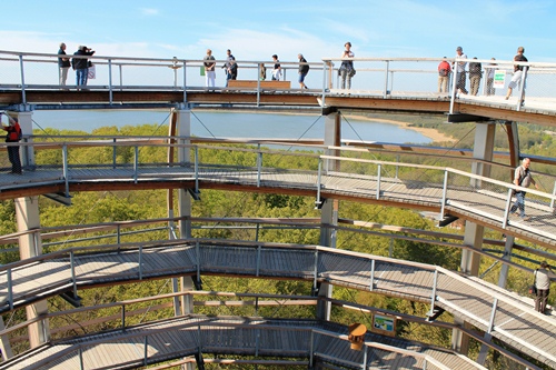 The website is only available in german at www.nezr.de. The park and its treetop trail are open every day from 9.30am. Closing time depends on the sun going down, with 4.30pm being the earliest in winter. The entrance is not cheap at €9,50, but it is completely worthwhile. There is also a very interesting exhibition on nature and human impact on it. The tree top trail is completely barrier-free and easily accessible with wheel- or push chair. Your dogs are not allowed in, but dog houses outside the parks seem to provide a good place to await your return.