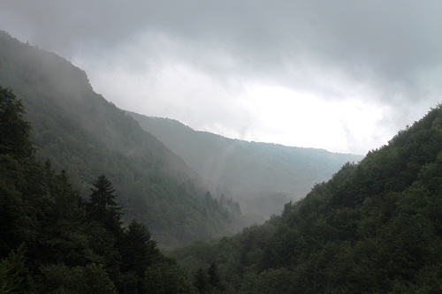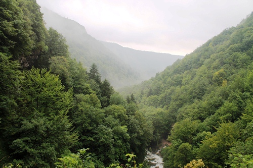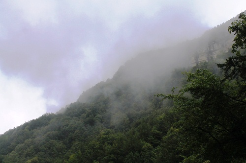 Despite the muddy trails and the drizzle that continued to fall as we walked up the side of the falls through the trees, there were plenty of others who had turned out to experience the Hérisson in all their glory… and there were plenty of examples of inappropriate footwear caked in mood by the time people made their way back to the car park. By now mist was rising from the forests that clung to the slopes of the valley, and it was clear that what we had seen and were experiencing were directly related to the weather that had driven us away the day before. Sometimes it is just worth the wait.