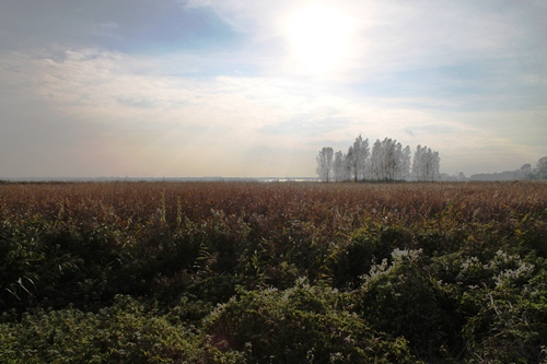 We took a trip to the southern point of the Gnitz peninsula, which protrudes into the Achterwasser south from the resort town of Zinnowitz. There are a couple of communities on the peninsula, including Lütow and Neuendorf, but the single road in and out, as well as the late autumn afternoon that we visited, gave the place a certain off-the-beaten-track feel which was added to as we passed a hotel complex, shuttered and closed, the paint peeling from the sign advertising the swimming pool. We drove until the road ended, at Lütow harbour, and from there continued on foot.