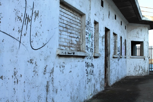 We walked down the breakwater, past the new developments of apartment buildings interspersed with open spaces – wastelands of half-dug holes filled with water upon which swans floated serenely – the bushes filled with goldfinches, the gap between the apartments and the Asda megastore filled with the remains of construction halted. At Newhaven harbour the scene was of a smaller scale, the sun reflecting on the deck hatches of the handful of boats moored in the shadow of the old Victorian fishmarket. There is still a fishmarket in the red brick building, but it now shares the space and the quayside with a Loch Fyne restaurant, a Brewer’s Fayre pub, and a Premier Inn.