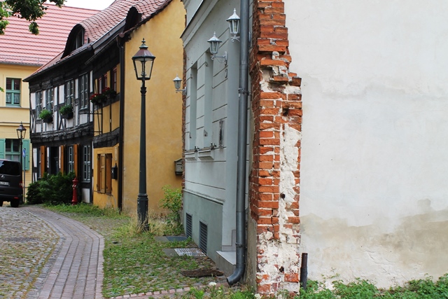 But as we cross the bridge from the harbour and into the old town – a collection of cobbled streets around the church – I get the sense of something missing… the old town itself. For in Rathenow, the Altstadt only contains a handful of pre-war buildings. The red brick church (itself needing massive renovation over recent decades) and some half-timbered houses, but otherwise most of the the old town seems to have been built either during the years when Rathenow was part of the German Democratic Republic, or even since. It is not that it is bad, or it is ugly, but just you cannot help but get a sense of loss as you walk the streets… and you want to find out more.